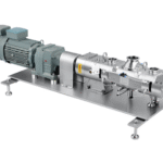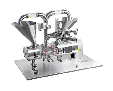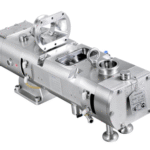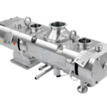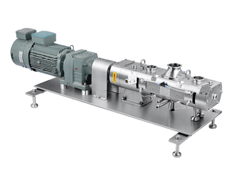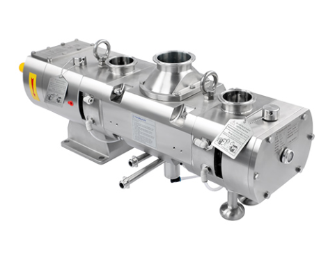 Bomba de parafuso duplo de dupla cabeça que proporciona transferência contínua com alta capacidade, baixa pulsação e desempenho estável, ideal para processos sanitários que exigem eficiência e versatilidade.