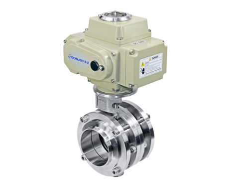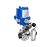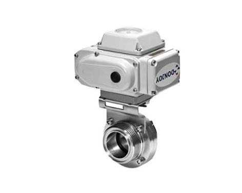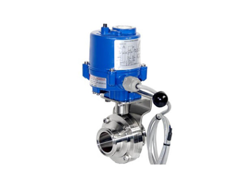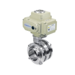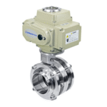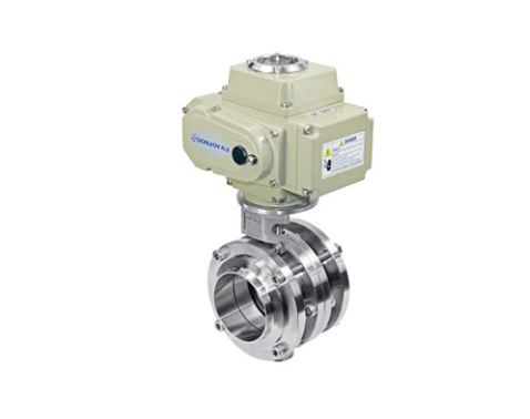 Válvula borboleta elétrica reguladora que ajusta o fluxo com precisão, oferecendo operação automática, resposta estável e excelente desempenho em processos sanitários e industriais.
