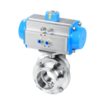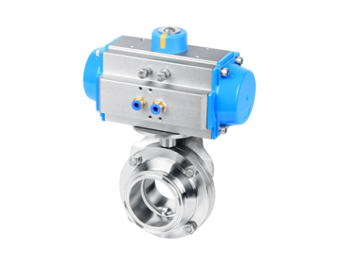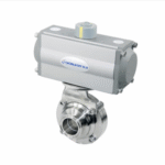 Válvula acionada por atuador pneumático, instalada em configuração horizontal para otimizar o fluxo e a integração na linha. O disco giratório permite abertura e fechamento rápidos, garantindo controle eficiente e confiável. Seu design sanitário facilita a limpeza e evita acúmulos de produto. Ideal para aplicações em alimentos, bebidas, cosméticos e processos industriais que exigem automação, agilidade e higiene.