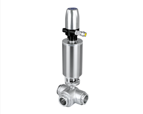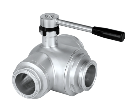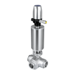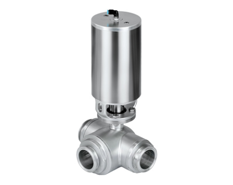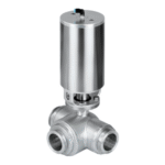 Válvula diafragma multiportas M-32E que permite combinar ou desviar fluxos com elevada higiene, garantindo vedação estéril, operação compacta e desempenho confiável em processos assépticos.