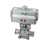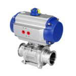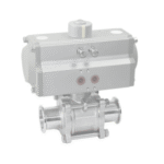 Válvula acionada por atuador pneumático, com corpo horizontal e esfera de passagem completa que garante fluxo livre e sem retenção de produto. Seu design sanitário evita zonas mortas, facilita a limpeza e reduz riscos de contaminação. Ideal para processos que exigem velocidade de operação, alta higiene e baixa perda de carga, especialmente nas indústrias de alimentos, bebidas, cosmética e farmacêutica.