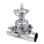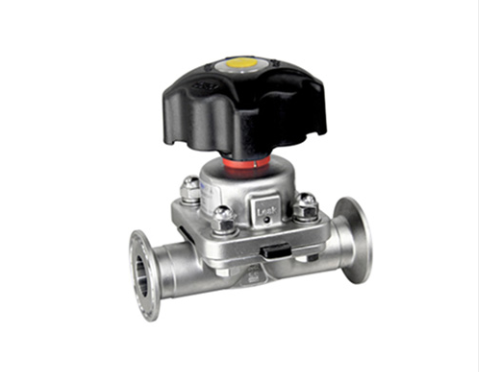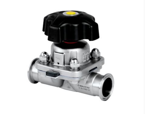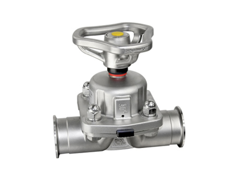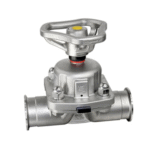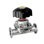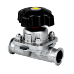 Válvula diafragma manual que proporciona controle higiénico do fluxo, garantindo vedação estéril, operação simples e alta confiabilidade em processos sanitários e assépticos.