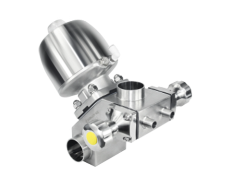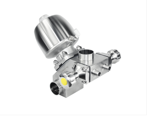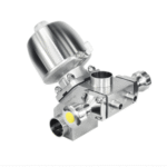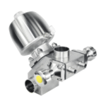 Válvula globo reversora pneumática que alterna o fluxo entre linhas com precisão, garantindo comutação rápida, vedação confiável e desempenho estável em processos sanitários e industriais.