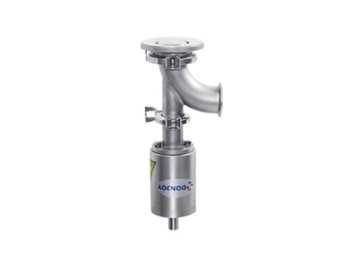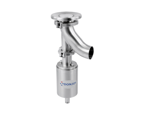 Válvula pneumática de fundo de tanque que permite descarga automática e segura, garantindo vedação higiénica, operação rápida e eficiência em processos sanitários e industriais.