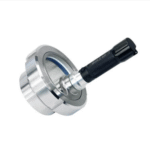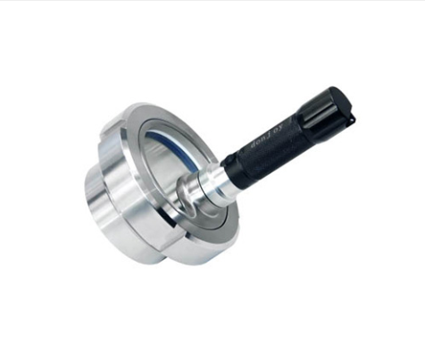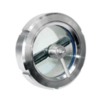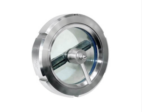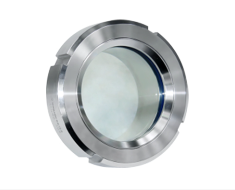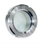 Vidro de inspeção com conexão união que permite visualização clara do processo e fácil desmontagem para limpeza e manutenção.