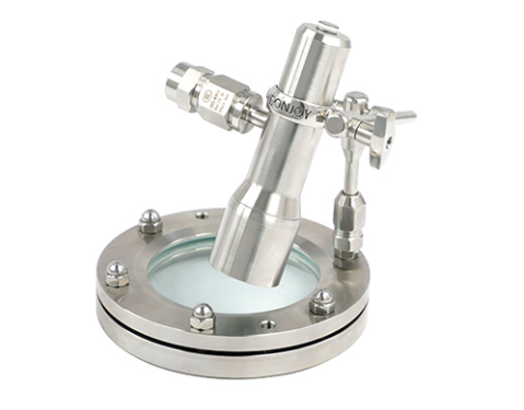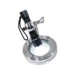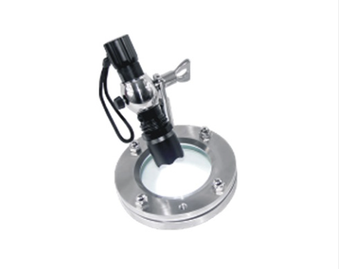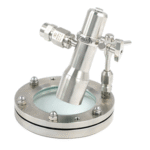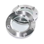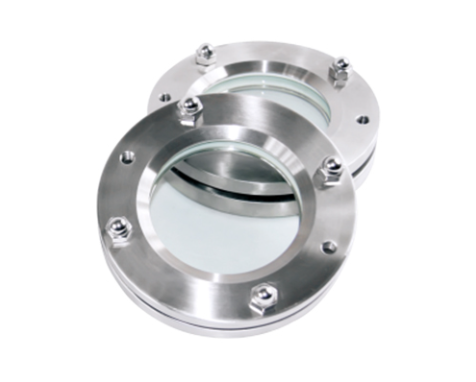 Vidro de visualização com conexão flangeada que garante alta resistência mecânica, vedação confiável e inspeção clara do processo em sistemas industriais e sanitários.