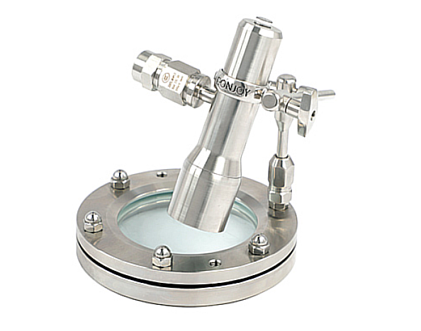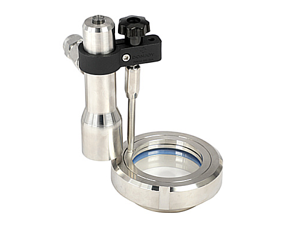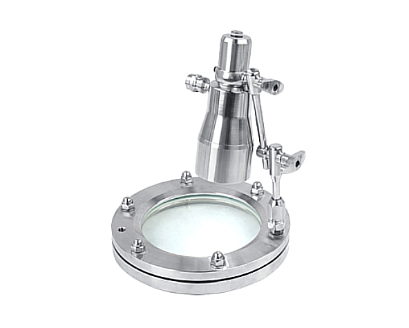 Visores de flange com luz multiangular 24 V CC que oferecem iluminação direcionada e visualização clara do processo, garantindo inspeção segura e eficiente em sistemas sanitários e industriais.